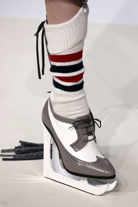 Can we talk shoes? Disappointment reigns. Garish prints, oddball heels and clunksters galore filled runways in February. It can’t be true we’ve forgotten clunky shoes make clunky girls. Designer dresses don’t pair with a Frankenstein stride. Just won’t happen. Ever. Trust me. I’ve watched this one come and go before.