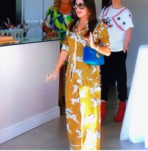If you’re actually gonna pick out inappropriate fashion, for any age, why not choose wearing pajamas outside. We all love a great jammie, don’t get me wrong. These are designer silk pajamas. You pair them with heels and then prance around town pretending to be dressed. Yes, you look ridiculous. But what makes you the real fool is that you spent a thousand for the top and another thousand for the bottoms. If you’d like to buy my Victoria’s Secret cast off silks, I can get you a deal. And I guarantee they’ve only been worn indoors. Well, maybe on the patio sipping coffee or wine. But romping down Rodeo Drive–no, no and no again. See Kyle Richards, that paragon of caftan taste, in hers.