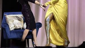 Pontificators are dying, salivating in effusive praise of her glorious choice. Not since Myrtle burned at the stake on AHS have we seen Balenciaga screamed into the wind. The Washington Post positively fell over itself to vomit accolades about the canary yellow, ill-fitting satin bathrobe and $4000 holographic glitter parade thigh high boots. They have pronounced her look, “Fashion.”