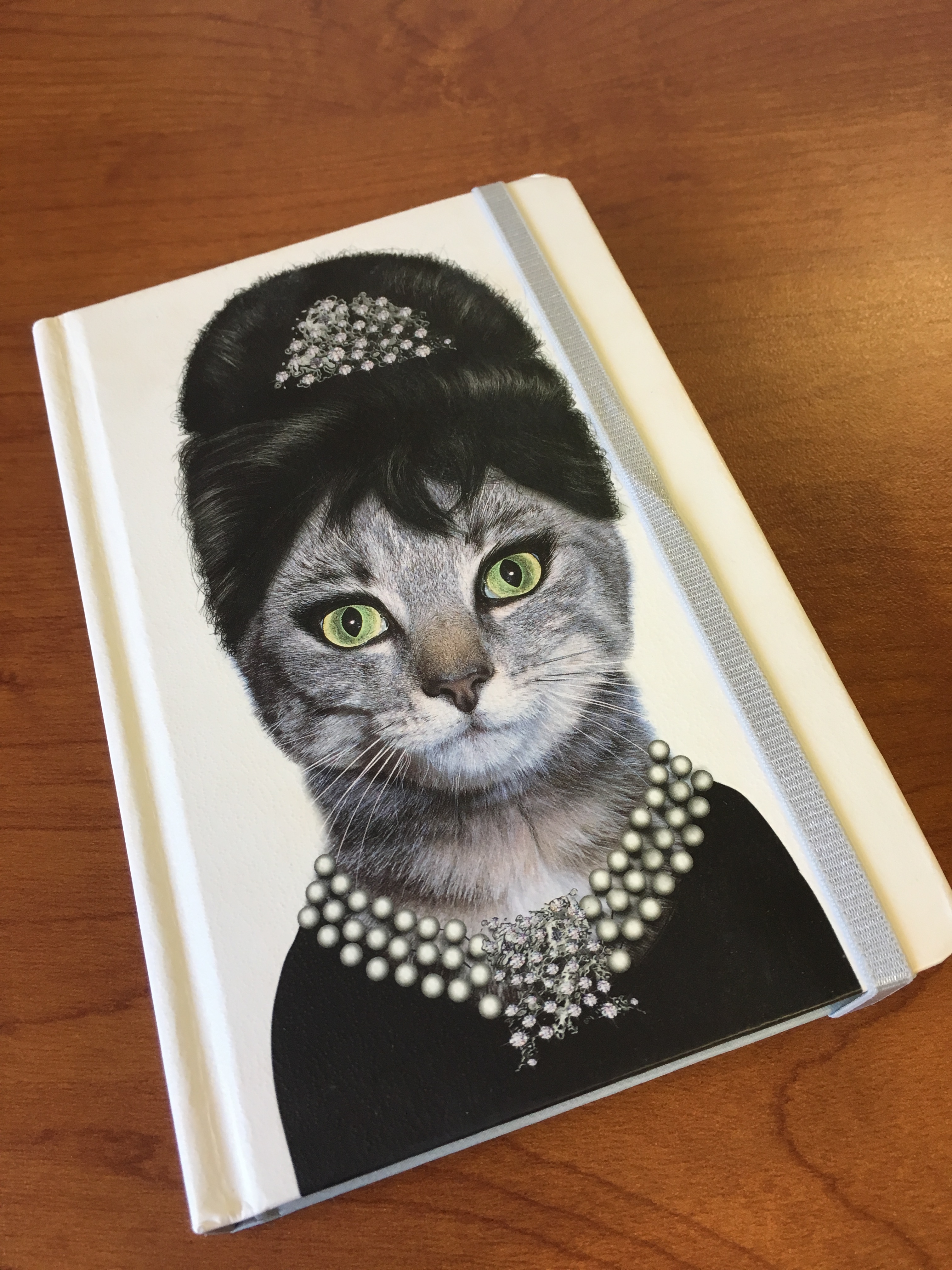 The ladies reveal contents of their bags. There’s the norm: pens, pencils, eyeliner, lipstick, wallet and keys. There’s also, grey coverage spritz, a toothbrush and toothpaste, a notebook with a cat done up like Audrey Hepburn, goldfish crackers, mints, gum, a rock labeled ‘secure” and Emergen-C.