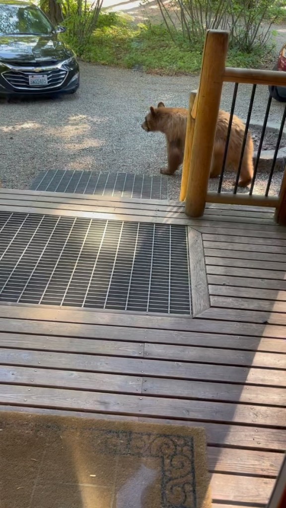 My son stands, arms above his head, moving swiftly toward open doors. Heads spin. A bear is on the porch, attempting entry. Childhood flashes and my thoughts go to garbage. The garbage is on the front porch. There was no warning from owners and that’s where the garbage can was upon arrival. I checked all written material as bears/woods is never from from mind once leaving The Dale.