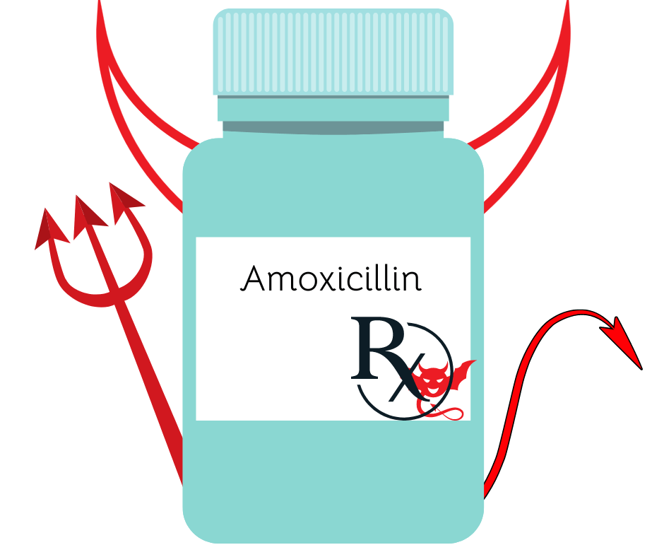 “Take it with food,” the pharmacist advises. “It can cause upset stomach.” Easy–it’s the stuff of kids’ ear infections. Wrong. Amoxicillin is the devil.
